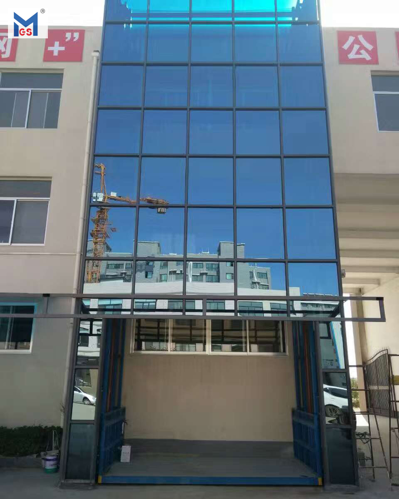 成都蜀西制藥有限公司在我訂購一臺載重2噸升高5米室外彩鋼瓦護(hù)欄升降平臺