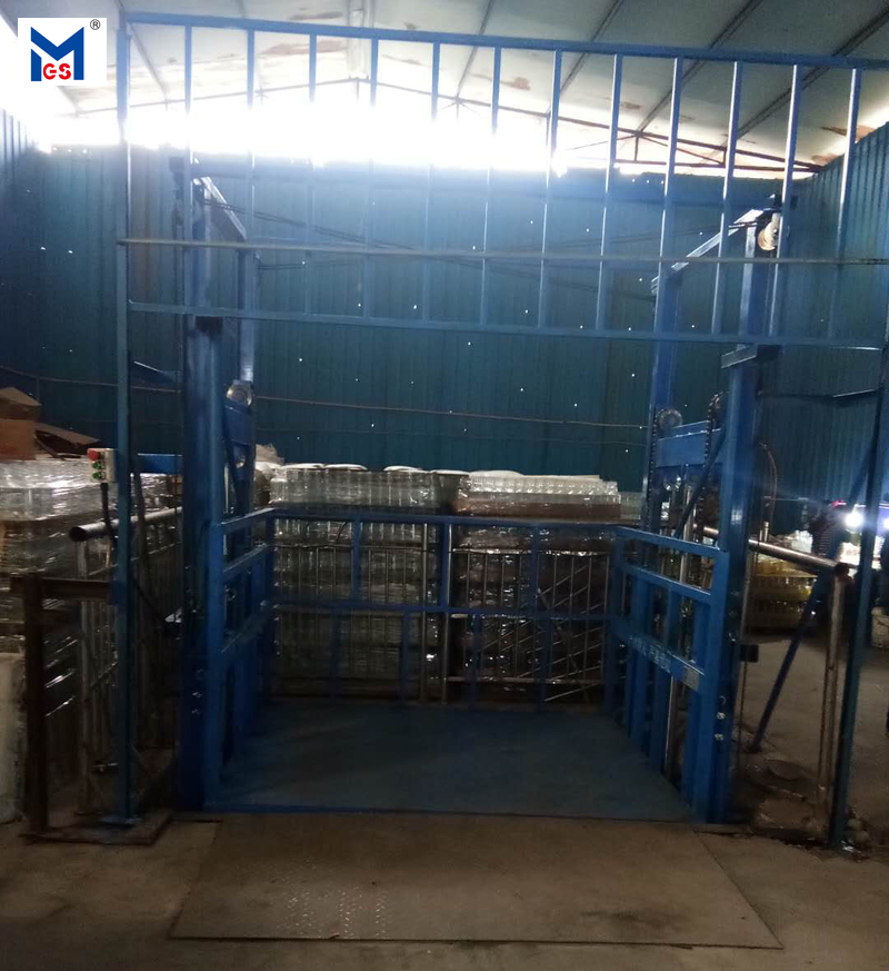 美格斯機械為四川愛森堡玻璃有限公司定制1臺導軌式升降平臺